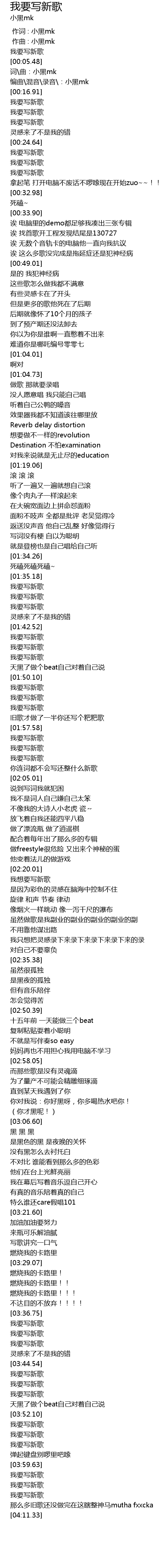 | [00:05.69] | 词\曲:小黑mk |
