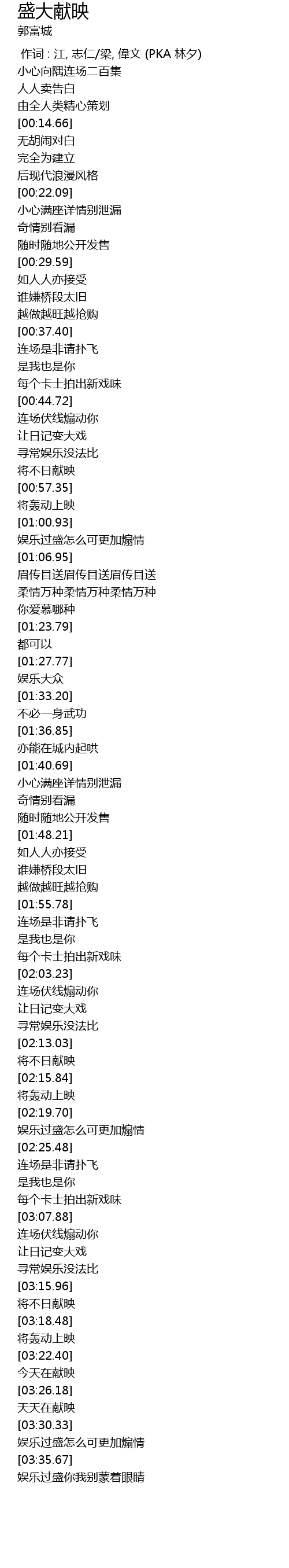 | [03:30.99] | 娱乐过盛怎么可更加煽情 |