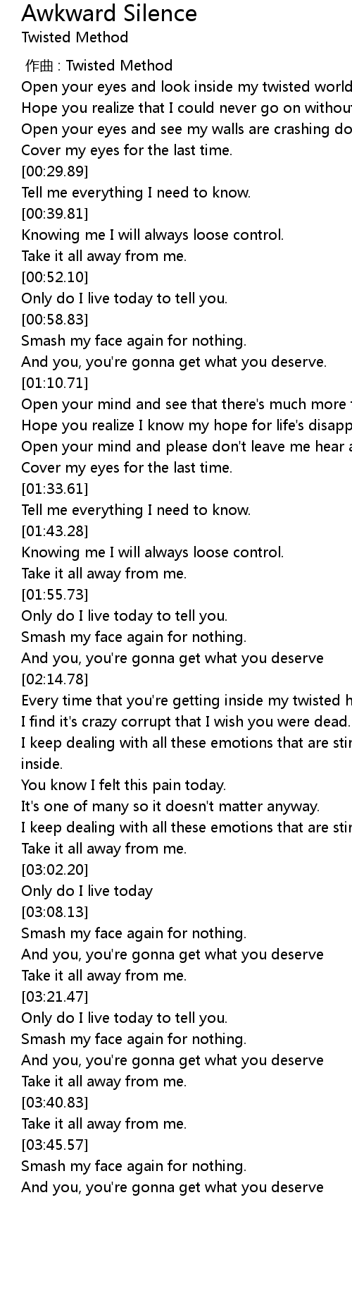| [02:40.45] | Every time that you're getting inside my twisted head. |