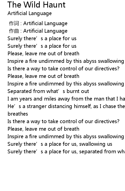 | [02:51.300] | Surely there' s a place for us, swallowing us |
