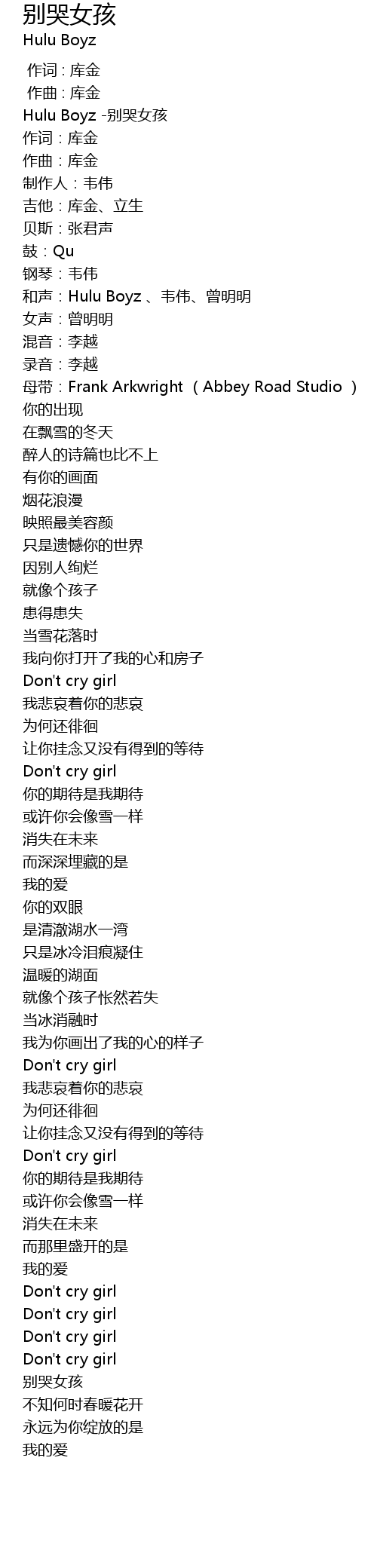| [00:00.91] | Hulu Boyz -别哭女孩 |
