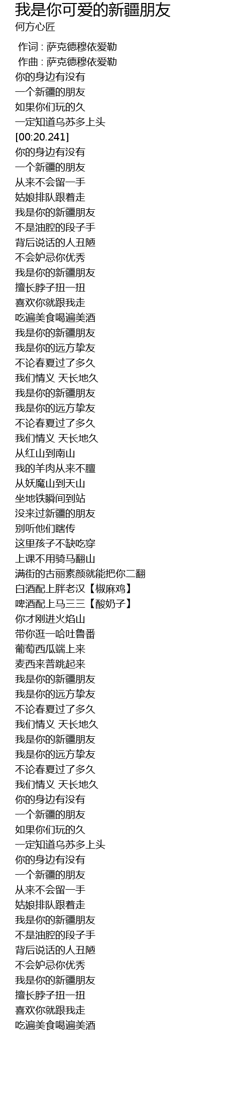 | [02:56.228] | 一个新疆的朋友 |