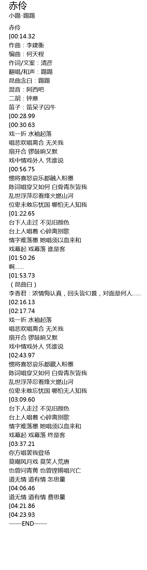 | [00:12.474] | 翻唱/和声:踢踢 |