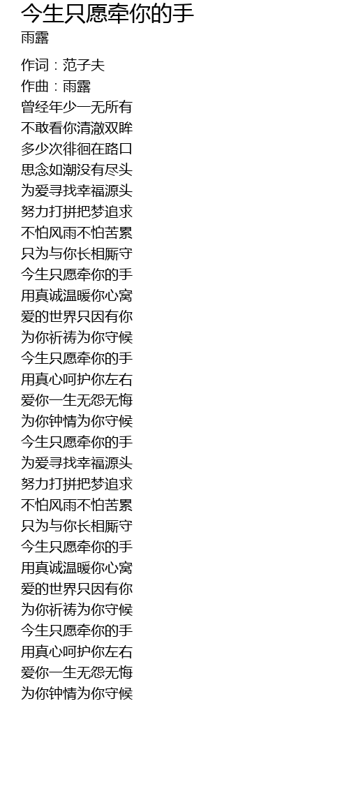 | [03:45.61] | jīn shēng zhǐ yuàn qiān nǐ de shǒu |