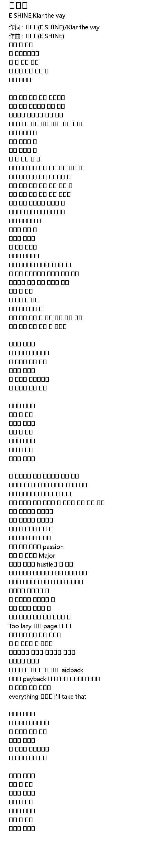 作词 : 이샤인(E SHINE)/Klar the vay |