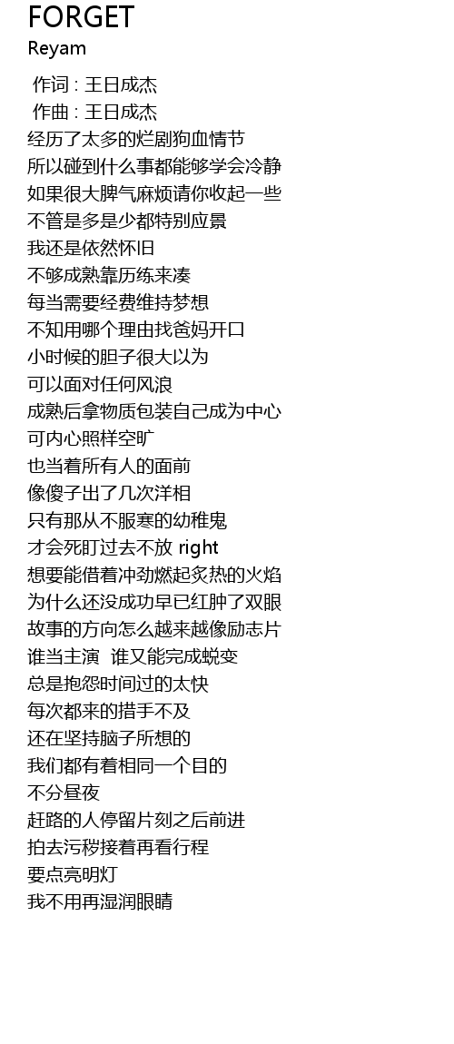 | [00:00.000] | 作词 : 王日成杰 |