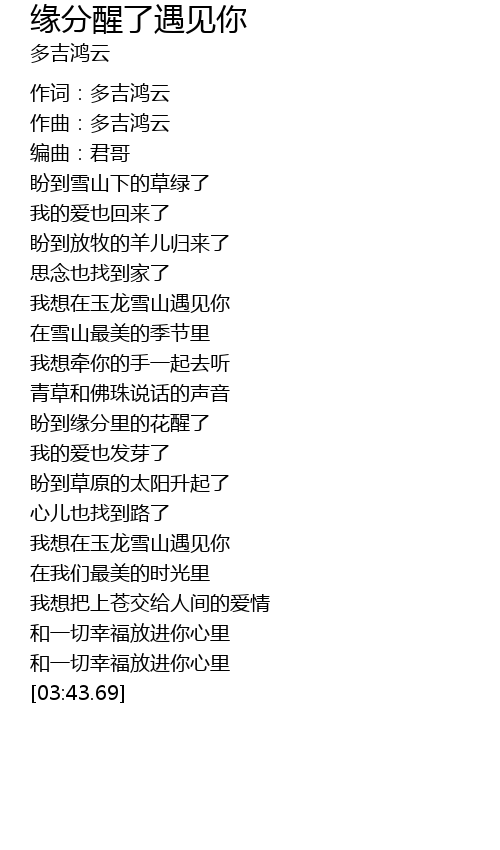 | [01:05.84] | 我想在玉龙雪山遇见你 |