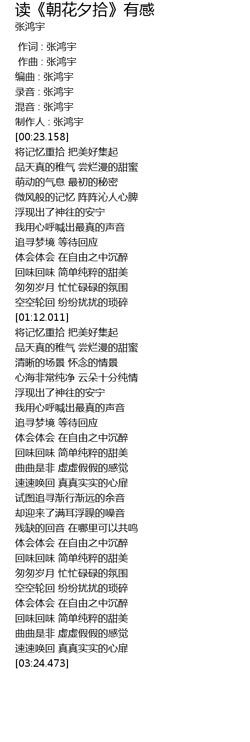 | [00:18.701] | 制作人 : 张鸿宇 |
