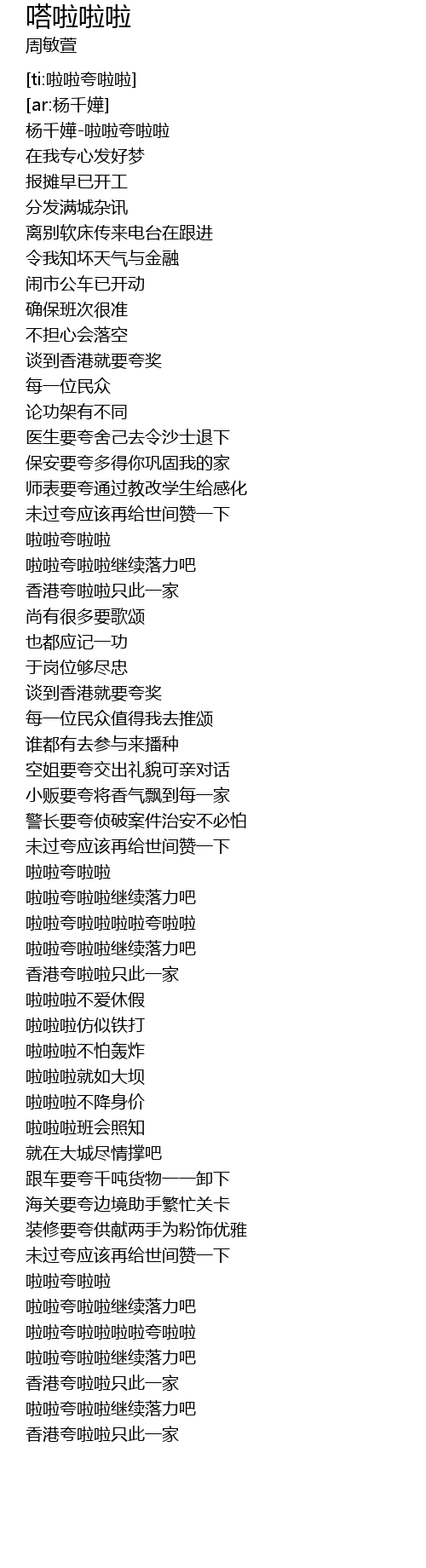 | [00:00.430] | 杨千嬅-啦啦夸啦啦 |