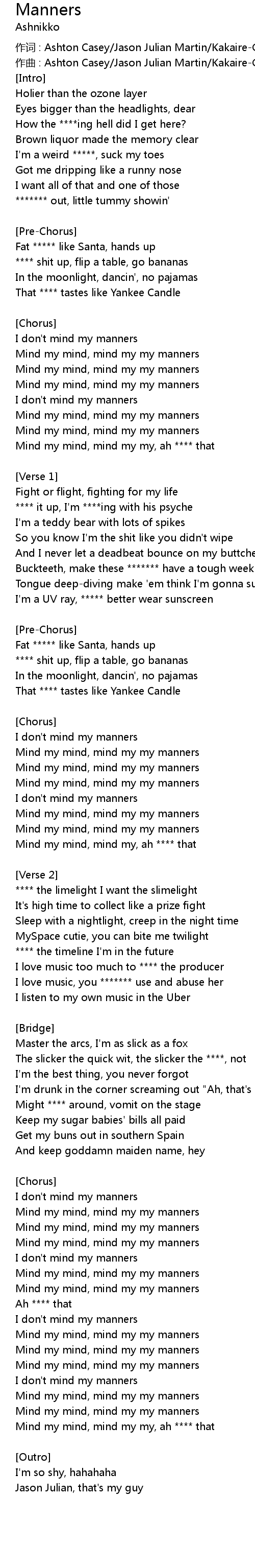 | Song | Manners |