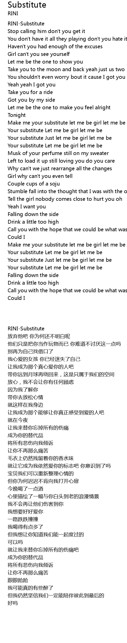 | [02:46.19] | Your substitute Just let me be girl let me be |
