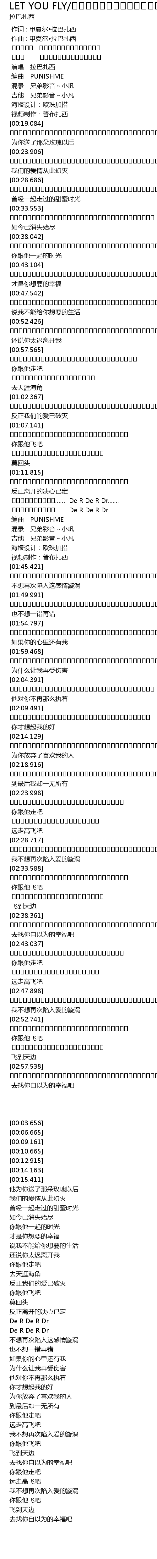 | [02:52.741] | nǐ gēn tā fēi ba |