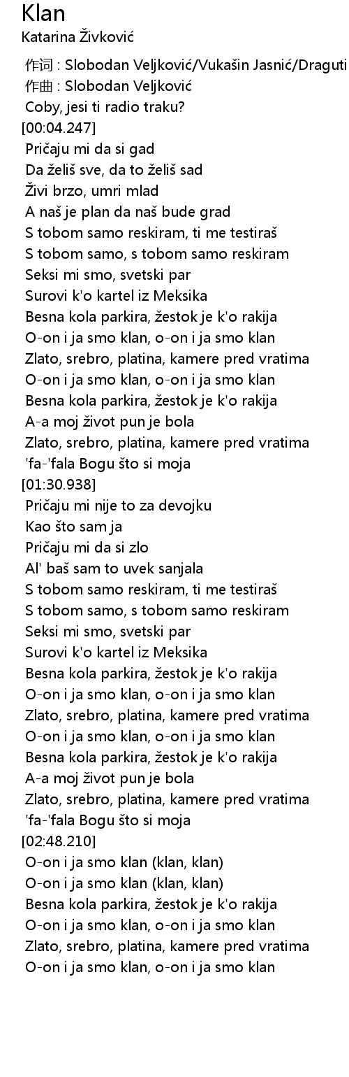 | [02:55.144] | O-on i ja smo klan (klan, klan) |
