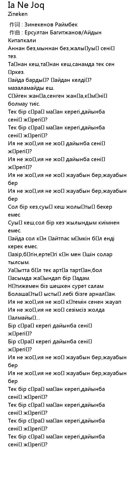 Ия не жоқ,ия не жоқ күтемін сенен жауап |