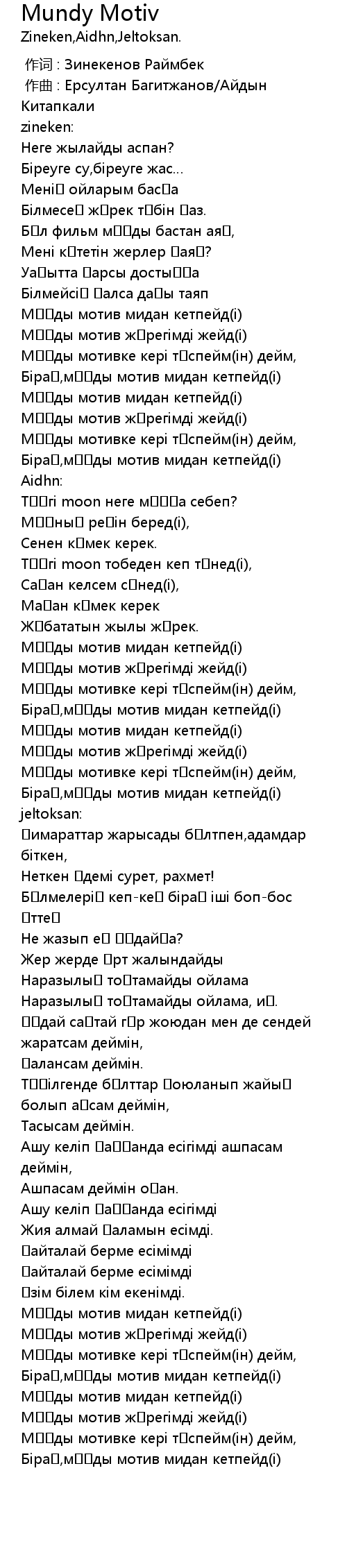 [02:43.60] Мұңды мотив мидан кетпейд(і)