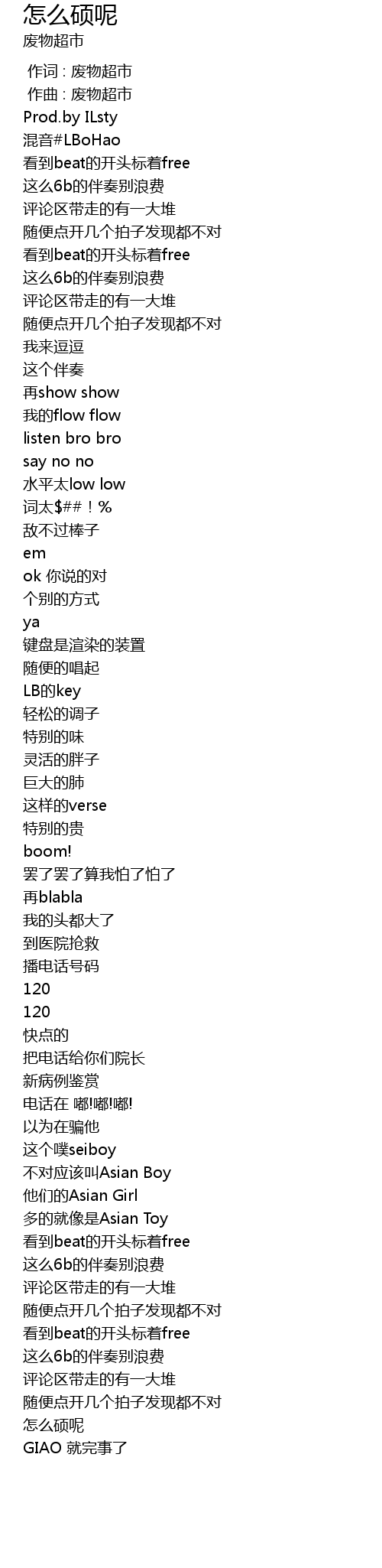 | [01:21.440] | 这么6b的伴奏别浪费 |