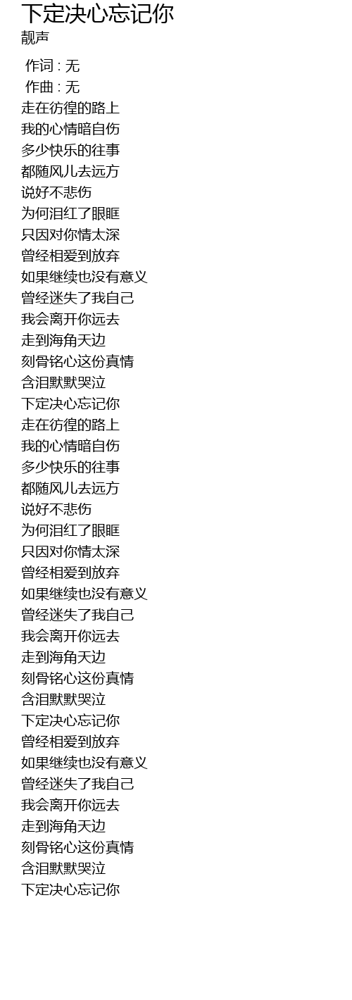 | [03:00.411] | xià dìng jué xīn wàng jì nǐ |