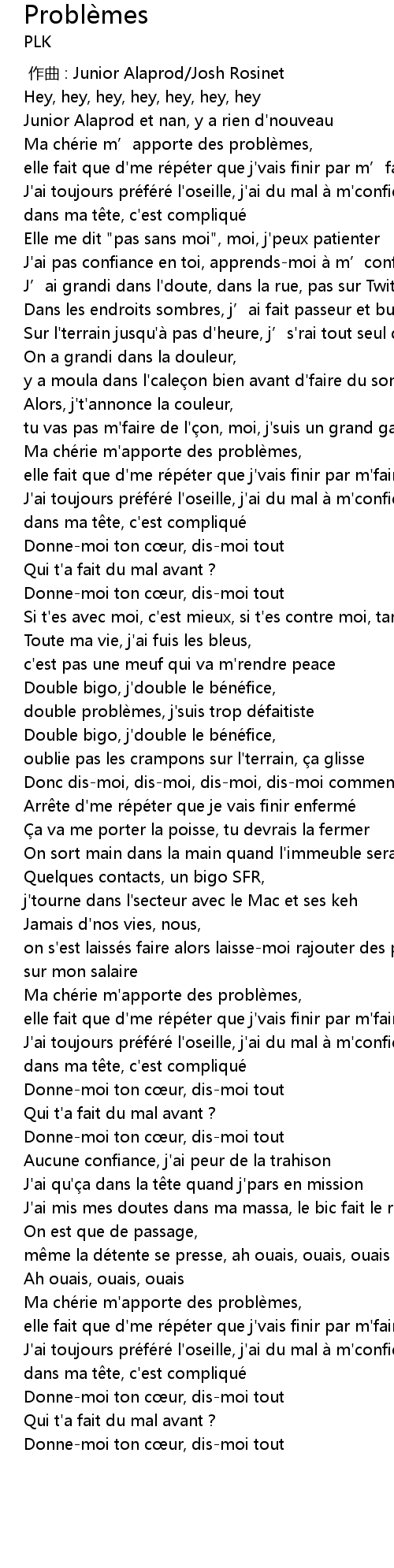 | [02:01.84] | Ma ché rie m' apporte des problè mes, |