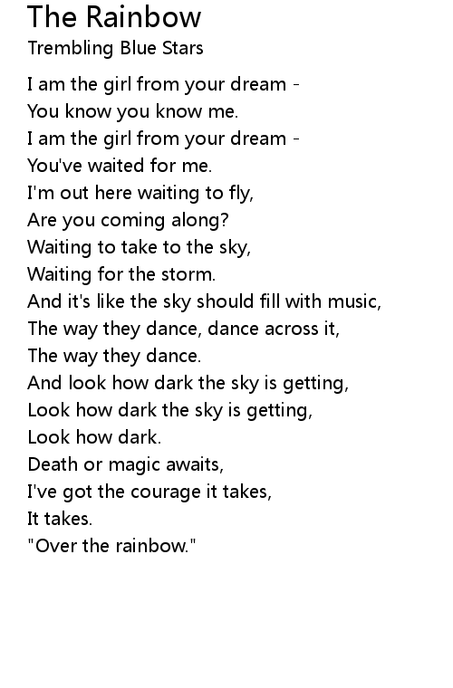 | "Over the rainbow." |