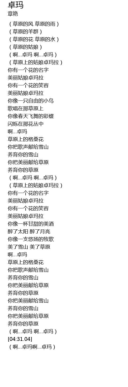 | [04:34.39] | (啊…卓玛啊…卓玛) |