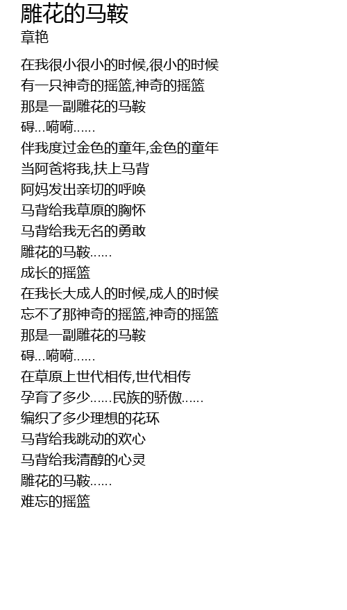| [03:00.65] | 雕花的马鞍…… |