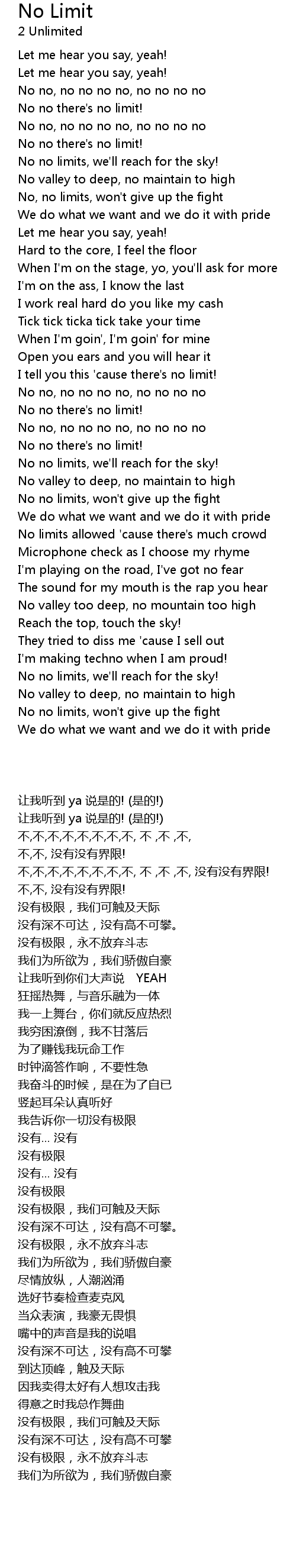 I tell you this 'cause there's no limit! |