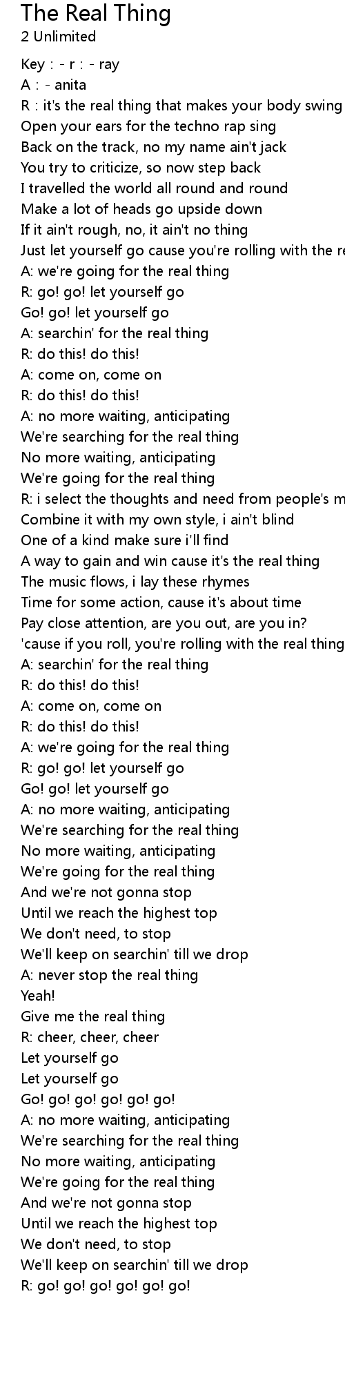 | Song | The Real Thing |
