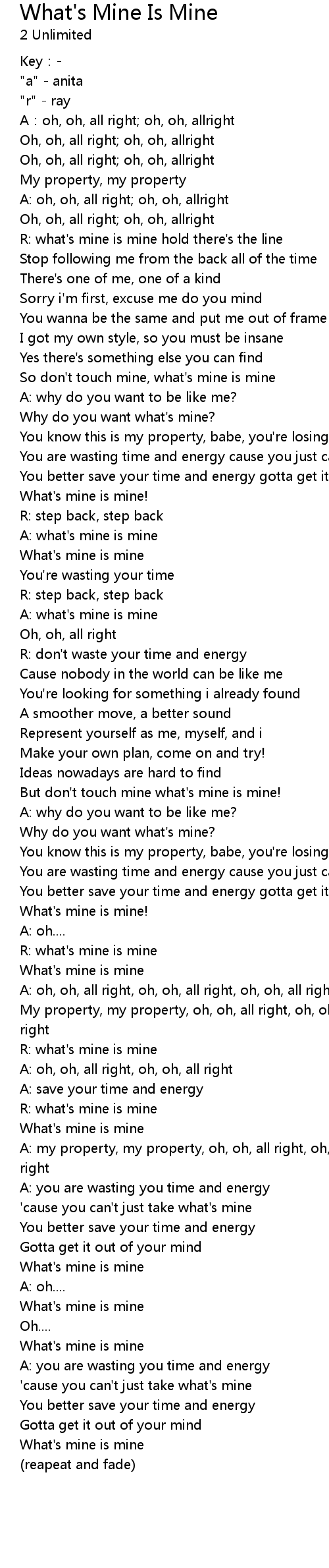 | A: my property, my property, oh, oh, all right, oh, oh, all right, oh, oh, all right | |