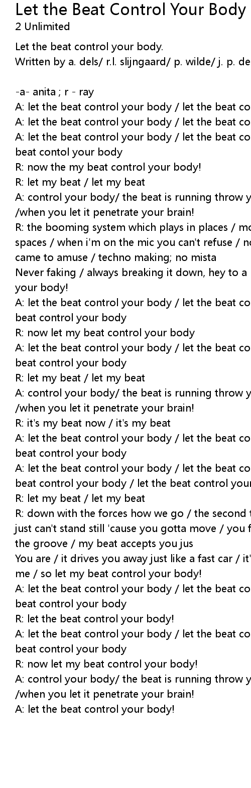 A: let the beat control your body / let the beat control your body / let the beat contol your body |