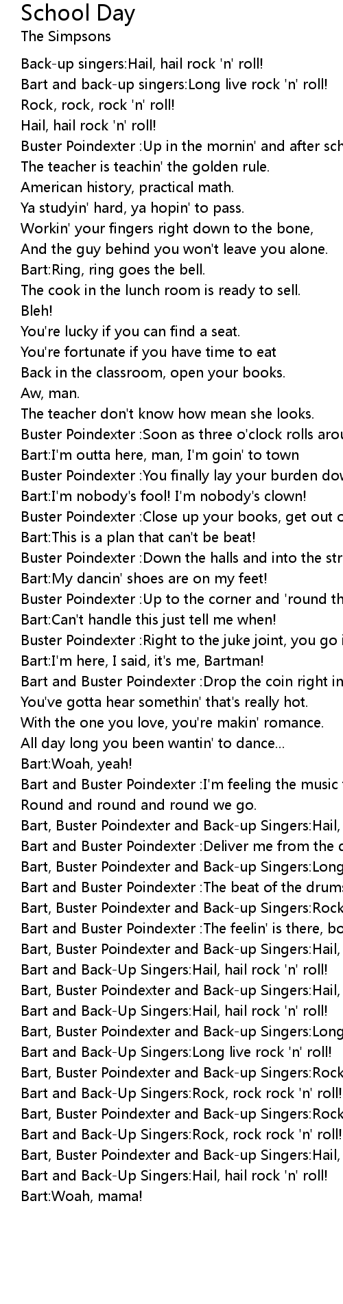 Bart, Buster Poindexter and Back-up Singers:Rock, rock rock 'n' roll! |