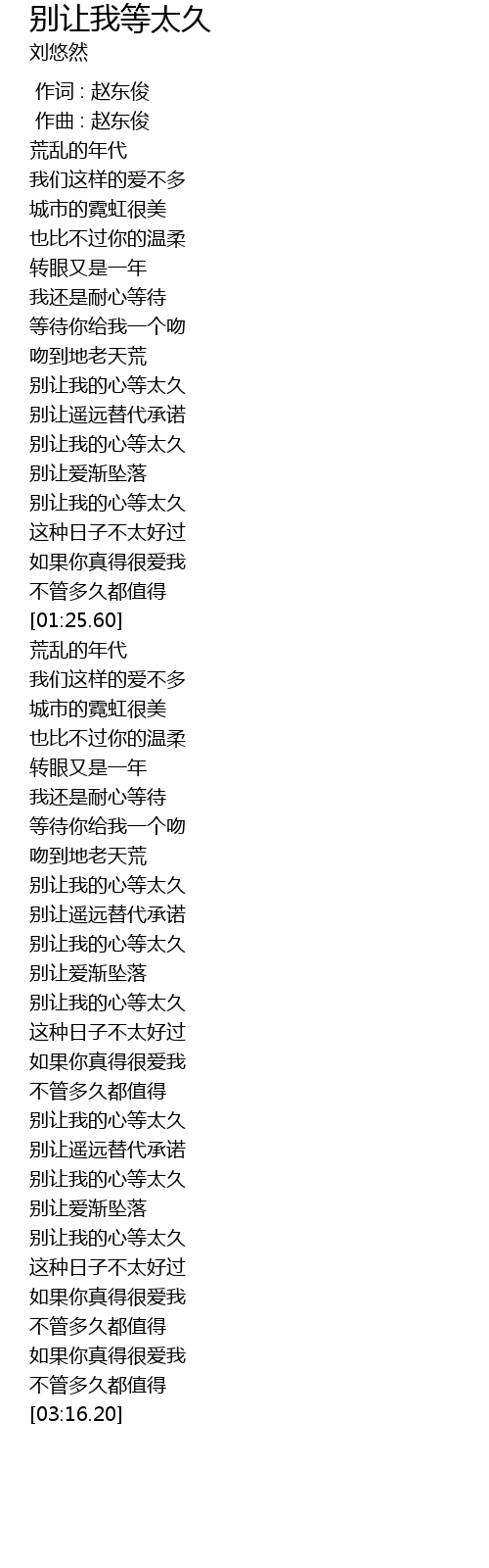 | [00:58.22] | bié ràng wǒ de xīn děng tài jiǔ |