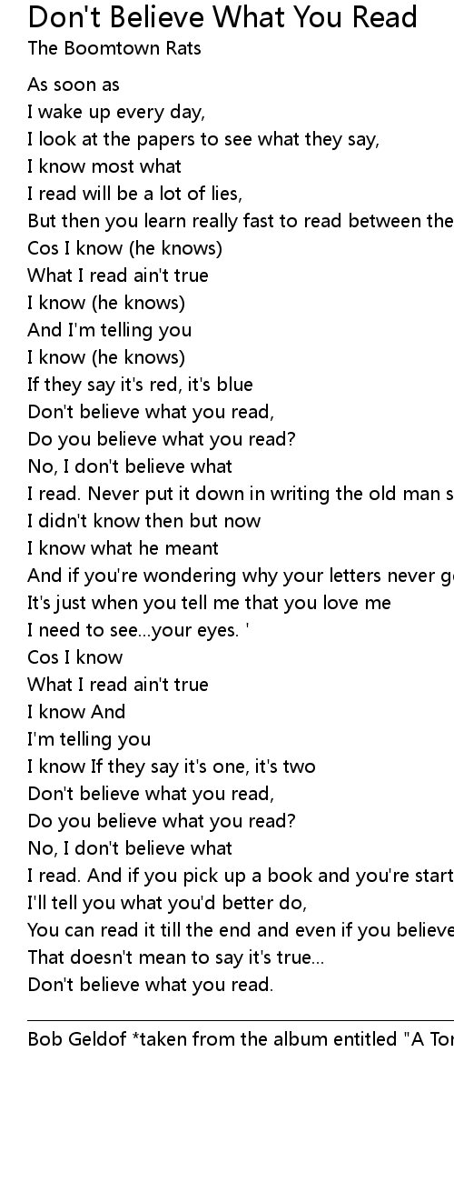 Don't believe what you read, |