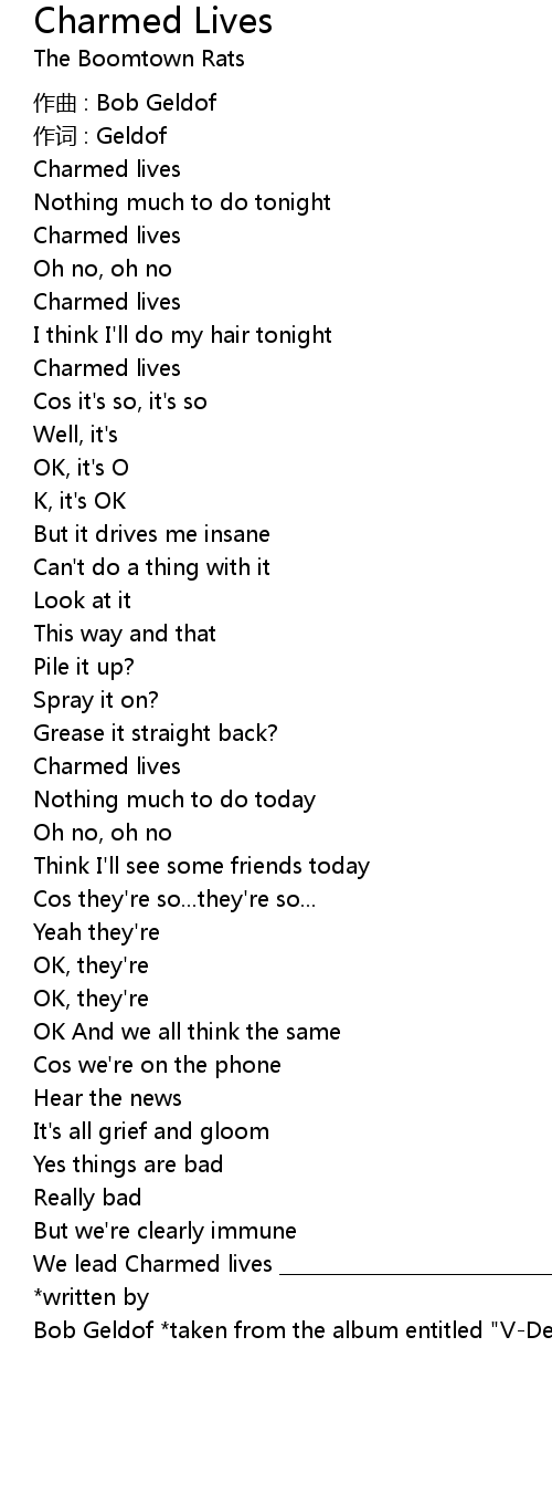 | Bob Geldof *taken from the album entitled "V-Deep" |
