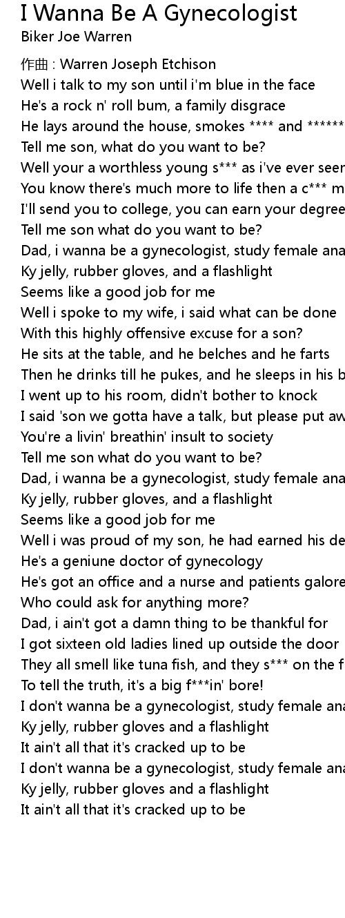 | Song | I Wanna Be A Gynecologist |