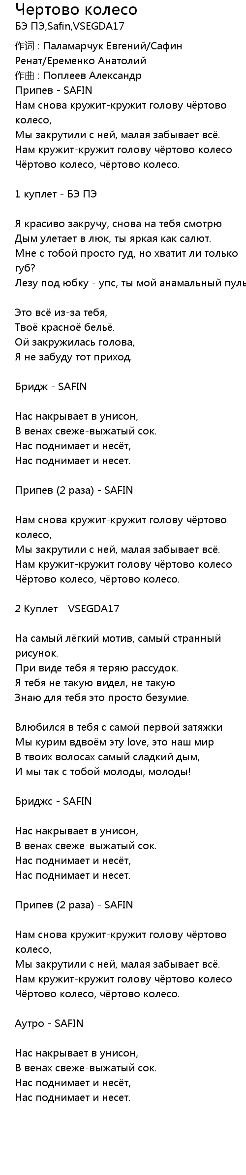 Чертово колесо  Lyrics