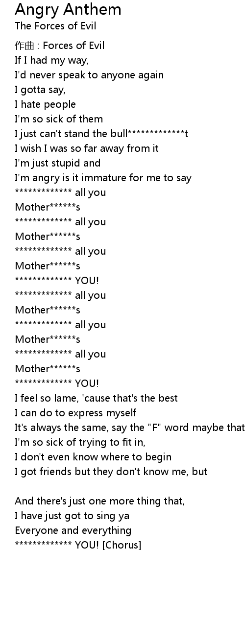 | It' s always the same, say the " F" word maybe that' ll help | |