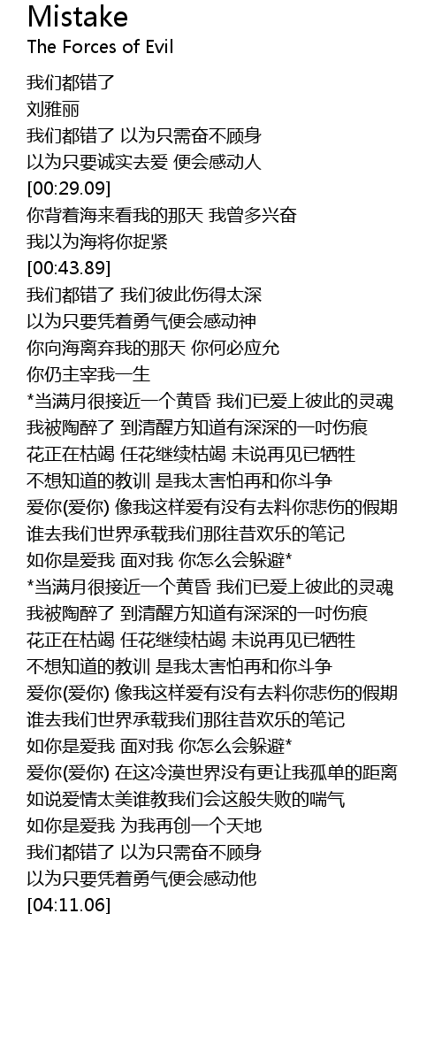 | [00:45.87] | 我们都错了 我们彼此伤得太深 |