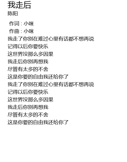 | [00:17.562] | wǒ zǒu hòu nǐ bié zài xiǎng wǒ |