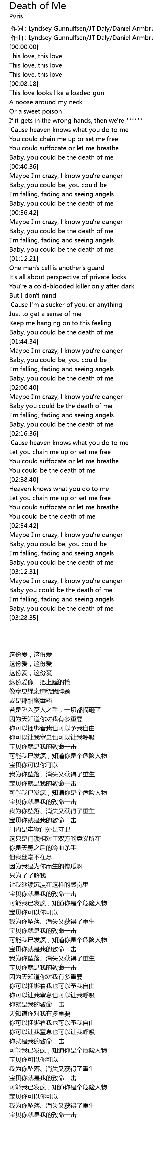 | [00:37.12] | Baby, you could be the death of me |