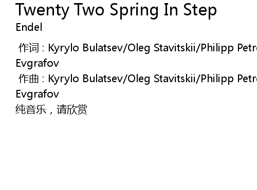 | [00:01.00] | zuò qǔ : Kyrylo Bulatsev Oleg Stavitskii Philipp Petrenko Dmitry Evgrafov |