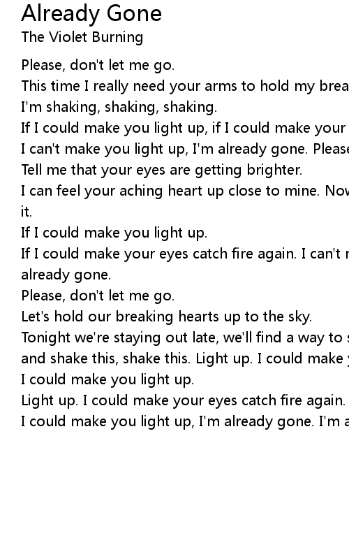 If I could make your eyes catch fire again. I can't make you light up, I'm already gone. |