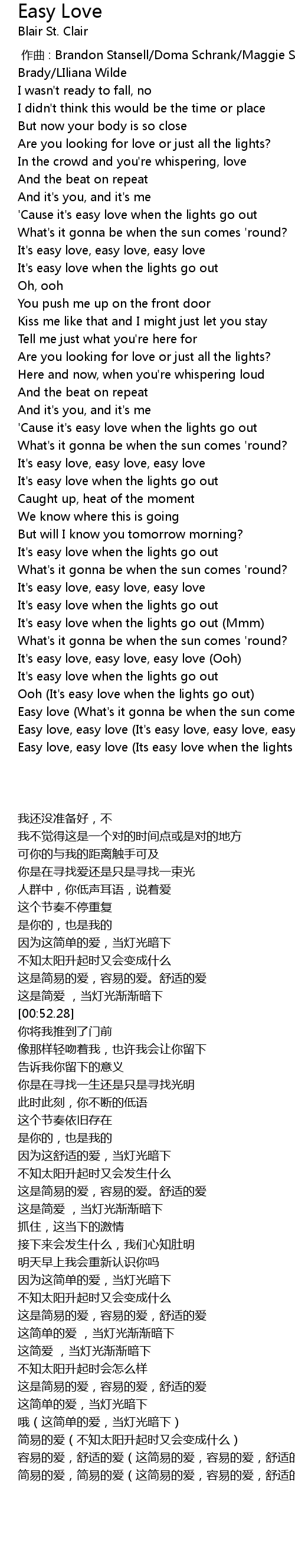 | [02:42.21] | Easy love, easy love (Its easy love when the lights go out) |