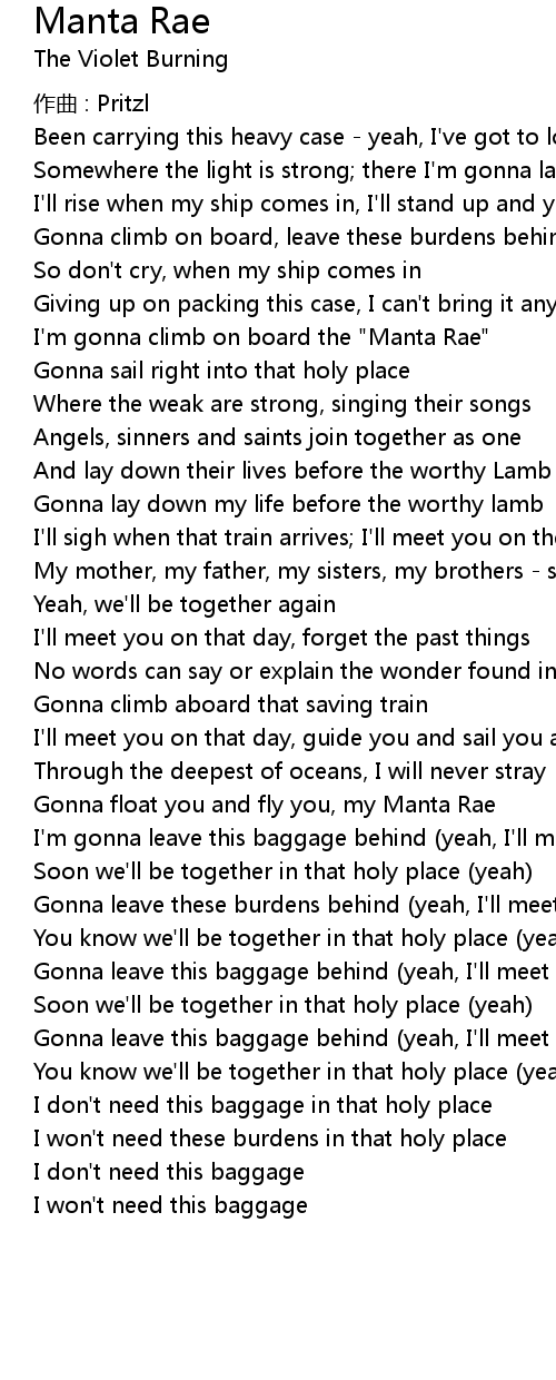 | Gonna leave this baggage behind yeah, I' ll meet you on that day | |