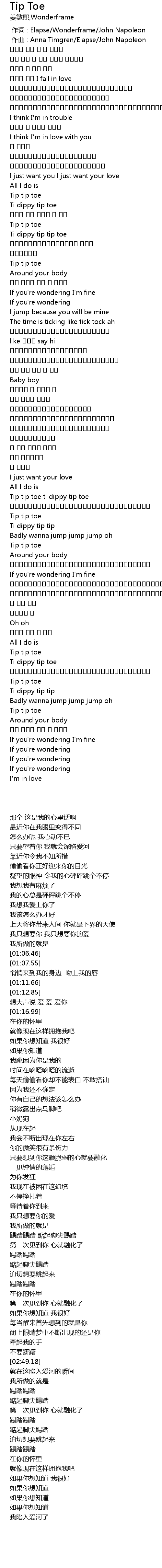 | [02:14.93] | Tip tip toe ti dippy tip toe |