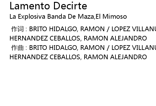 | [00:00.00-1] | 作词 : BRITO HIDALGO, RAMON / LOPEZ VILLANUEVA, ROBERTO / HERNANDEZ CEBALLOS, RAMON ALEJANDRO |