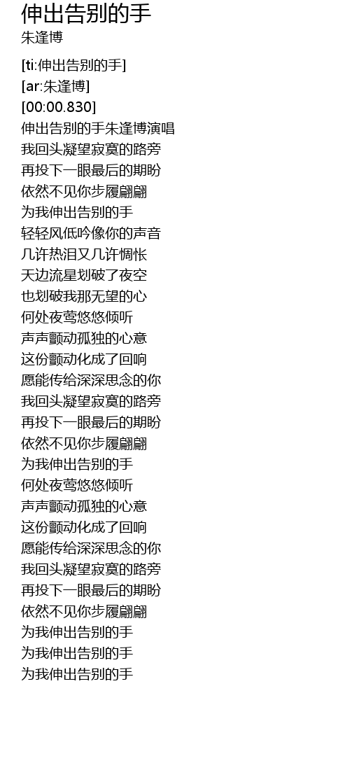 | [00:20.296] | 伸出告别的手朱逢博演唱 |