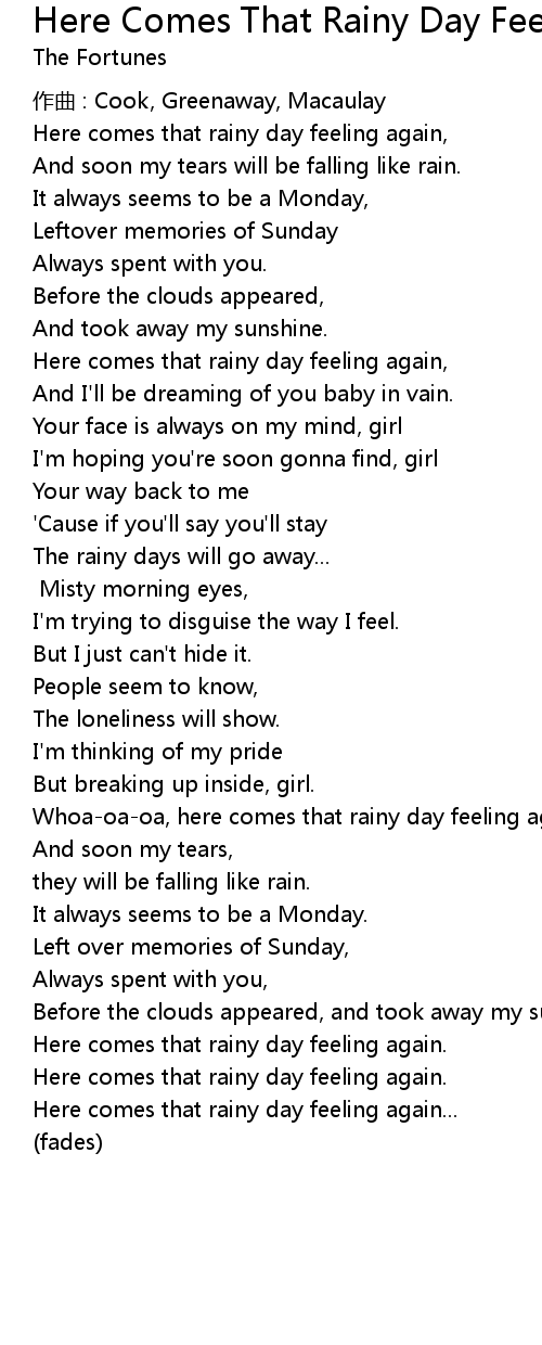 | Whoa-oa-oa, here comes that rainy day feeling again. | |