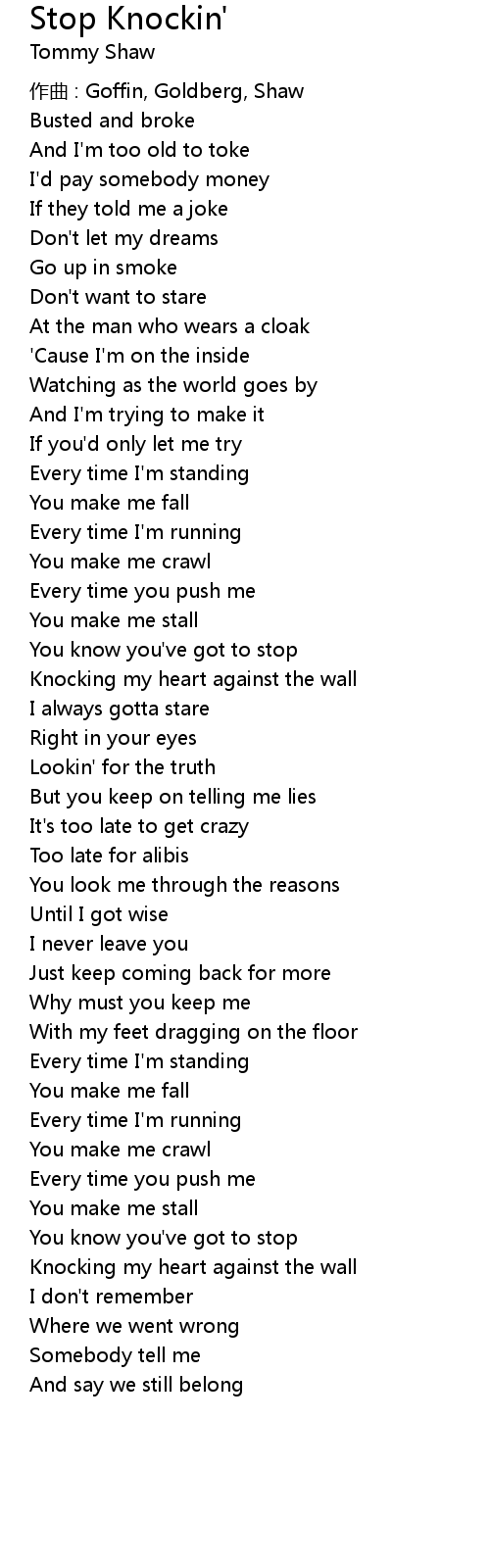 | Knocking my heart against the wall | |
