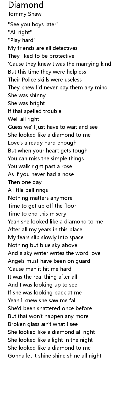 She looked like a diamond to me |