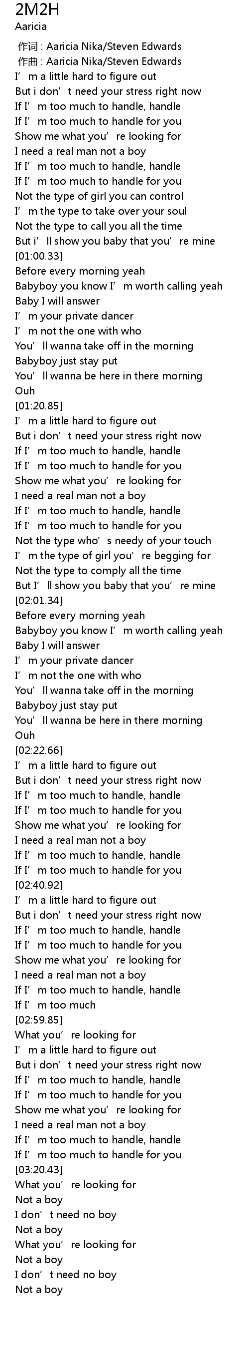 | [00:00.00] | 作词 : Aaricia Nika/Steven Edwards |